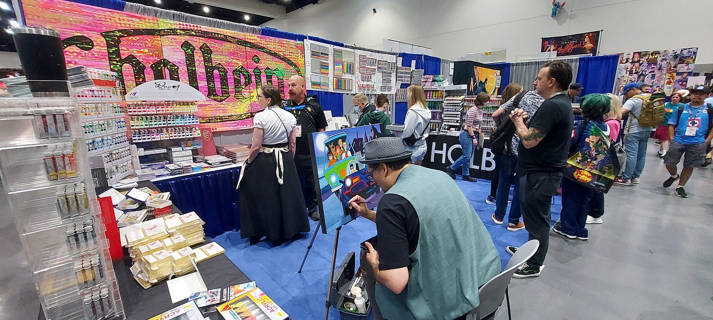 SDCC is a place to watch artists in action painting live, fixing costumes, creating special make-up effects on someone's face… here is the Holbein booth (yes, always a must visit for me. Um, sometimes more than once! I even bring a list!)