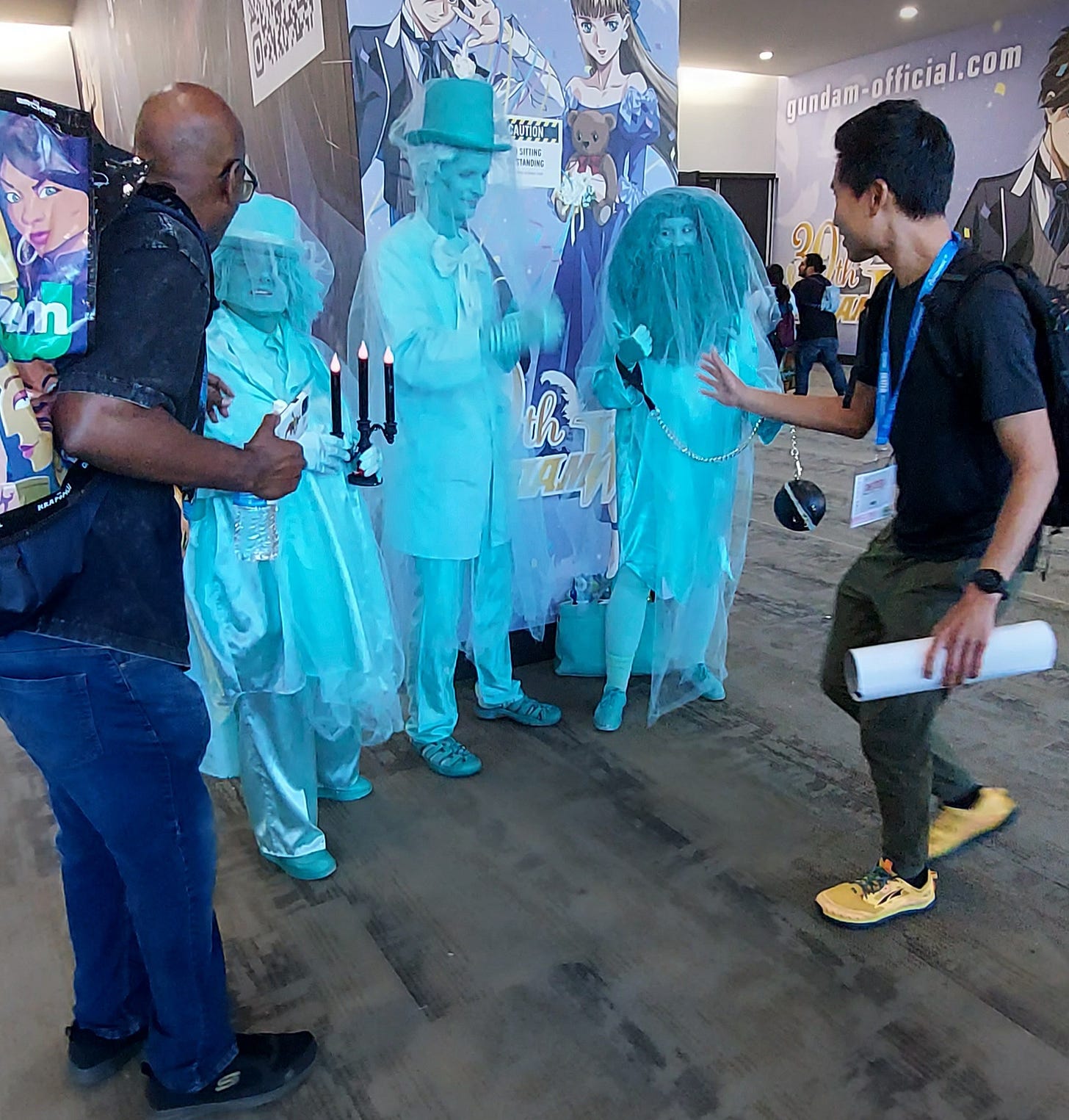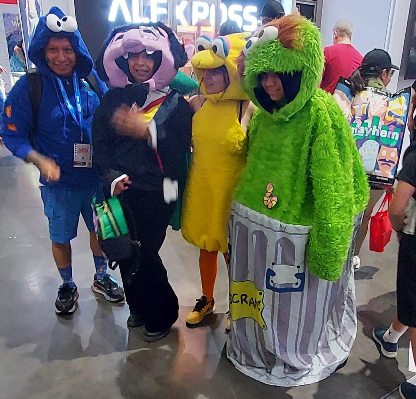 SDCC encourages people to come as they are or to build and design costumes (cosplay) such as Galactus or the hitchhiking ghosts from the Haunted Mansion, or our neighbors from Sesame Street: