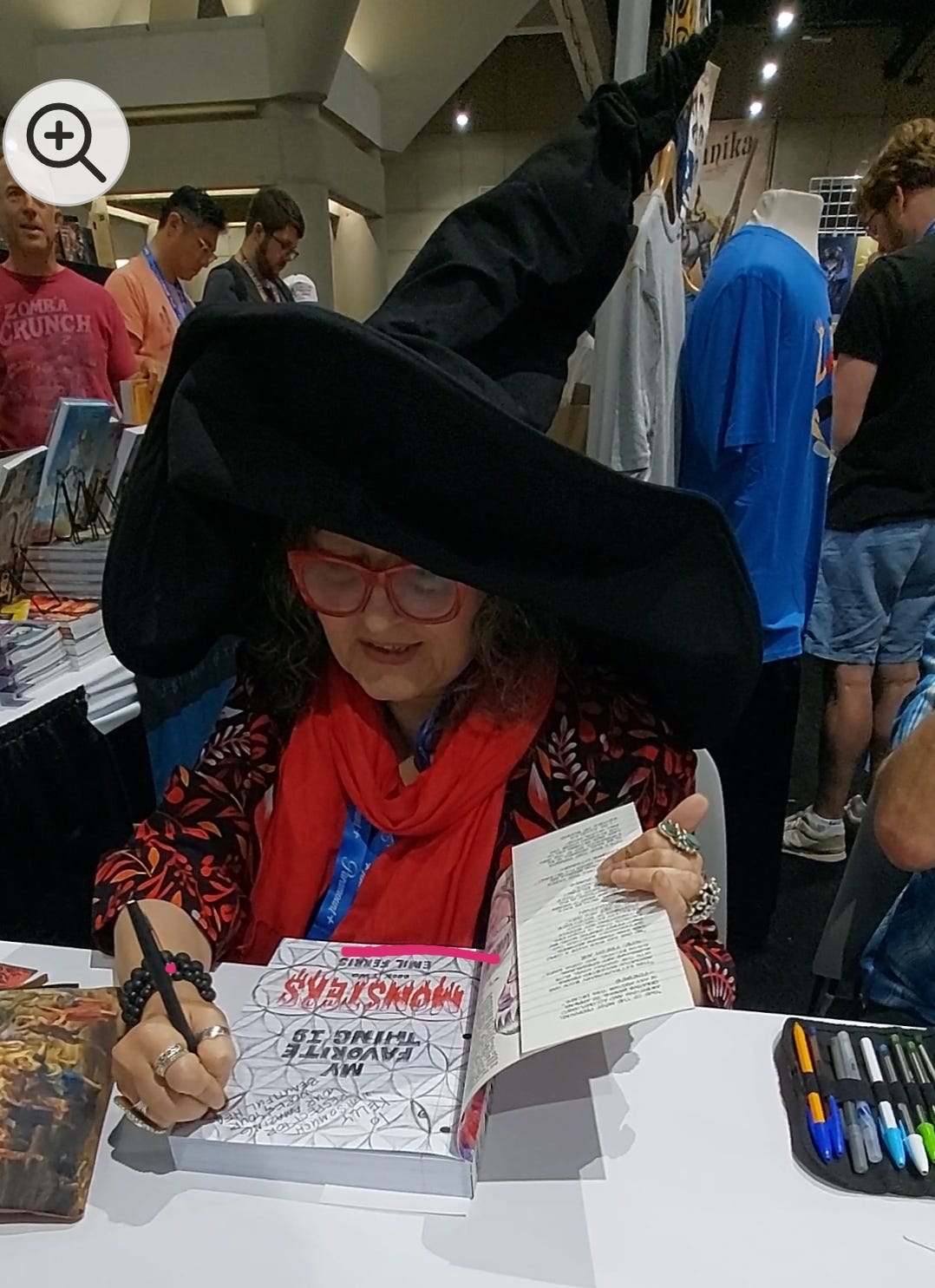 Seeing friends like Emil Ferris at Fantagraphics signing our copy of My Favorite Thing is Monsters Book Two. David and I first met Emil Ferris at her Blab show in LA at Copro Gallery eight years ago. It's always nice to spend time with humans you deeply respect and admire. Ferris is one of my “favorite monsters!”
