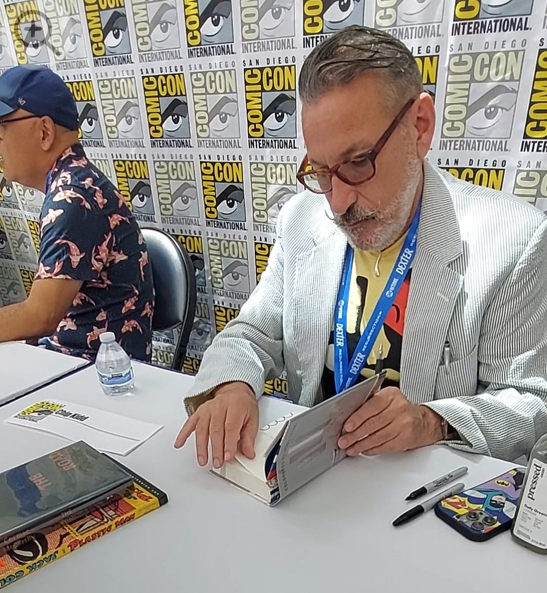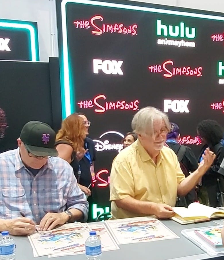 Matt Groening flipping through our sketchbook collected over the years, admiring the work of other artists. Yet, another collector and supporter of comic book artists. He has frequented comic book festivals for years and can be seen wandering the halls with bags of zines, comics, and graphic novels.